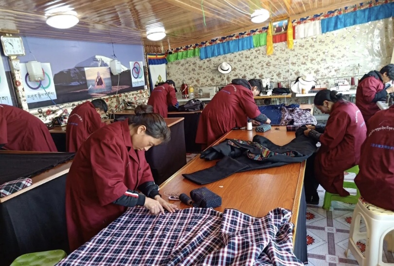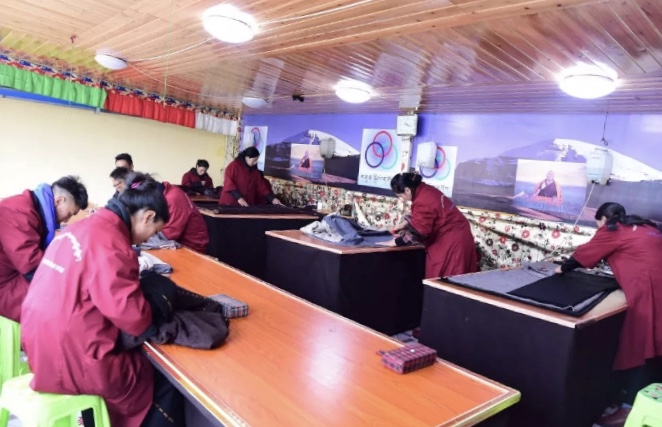 “我在这里免费吃住,并且还能学到藏装裁缝技术,现在我做好一件藏装就能拿到105元的工钱,一个月也有3000多元的收入,我觉的现在过得很好。”阿木乡贫困户扎央高兴地向笔者介绍着他当前的生活状况。