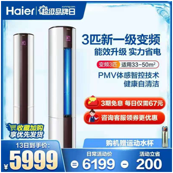 冰爽神器一:海尔3匹新一级变频柜机,爆款直击低价5999元