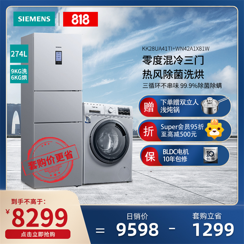 其中,美的旗下高端家电品牌小天鹅推出智能家电洗烘套装:小天鹅水魔方冷水洗滚筒洗衣机搭配小天鹅42℃热泵低温柔烘热泵烘干机,立省1300元,晒图还能享十年电机保修。而西门子德国保鲜技术带来的不一样的鲜活,加上人性设计纷呈的臻享洗衣体验,为消费者带来“客体+阳台”的新型家电消费场景,令家中尽显现代智能科技带来的高品质生活。西门子274升零度无霜保鲜三门冰箱搭配西门子9公斤洗衣机洗烘一体机,立省1299元,下单可获得双立人浅炖锅赠品及电机10年保修服务。