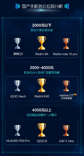8月苏宁易购手机消费数据也呈现出这一特点,各价位段排名靠前的单品均来自品牌力强且具有核心技术卖点以及高性价比的产品。如2000元以下价位段的Redmi K40、2000-4000价位段的真我GT以及4000元以上价位的HUAWEI P50 Pro。