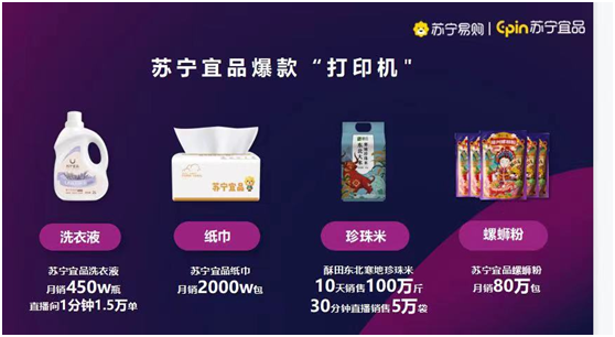 以苏宁宜品品牌为例,作为苏宁易购社交电商公司的DTC产品线,在此前社交联盟的渠道推广基础上,现下可叠加“鹊桥联盟”直播渠道打造爆款,扩张自有品牌生态圈。据了解,依托“鹊桥联盟”和社交联盟,以及苏宁易购线下约16000家零售店广场、家乐福超市等,苏宁宜品年销售规模已突破10亿。