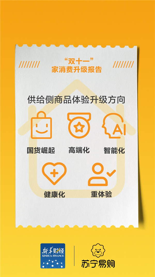 四川新闻网成都11月9日讯 随着“双十一”周期延长,线上线下购物狂欢已开启多日,其中以家电家装为代表品类的家消费在第一阶段引爆了消费热潮。11月8日,苏宁易购联合新华财经发布《“双十一”家消费升级报告》。报告显示,自“双十一”购物节启动以来,高端家电销售增长迅速,其中国货品牌越来越受到普通消费者欢迎,而环保、智能、重体验则成为了家消费的主流趋势。