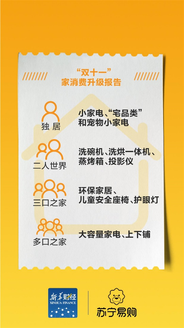而在“三胎政策”背景下,多口之家的消费需求集中在可用空间最大化,包括家电的大容量和家居用品的兼容性。按三胎一家五口人来计算,需要换洗的衣物、床单、被罩更多,小容量的洗衣机难以满足需求,人口福利直接带动大容量家电的需求。苏宁易购大数据显示,10公斤及以上的大容量洗衣机在“双十一”期间销售同比增长达到43%。