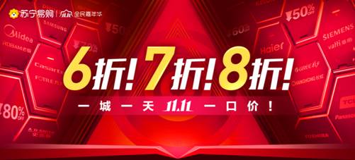 11月11日0点起,“一城一天一店”在全国69个城市的91家苏宁易购门店,开启为期一天的大牌家电最低6折的折扣活动,用户在苏宁易购APP或者到店都可参与。活动的商品涵盖当下智能、节能和时尚的大屏电视、冰箱、空调以及厨房卫浴电器。