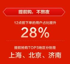 提前购,不熬夜,数据显示,今年双十一消费者乐于提前抢购付款,12点前下单的用户占比提升28%,上海、北京、济南登顶“手速最快”消费城市。