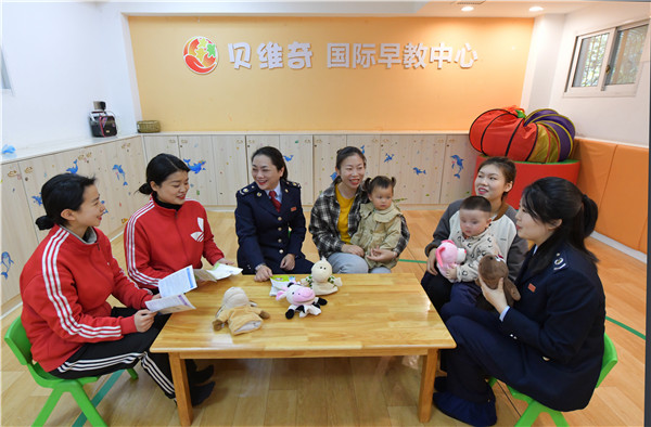资阳市税务干部到贝维奇早教中心亲子课堂,为家长和老师讲解3岁以下婴幼儿专项附加扣除政策