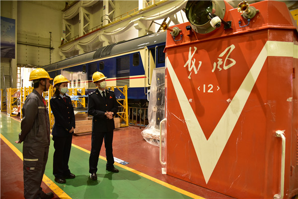资阳市税务局干部中车资阳机车有限公司车间了解生产经营情况,送上最新退税政策