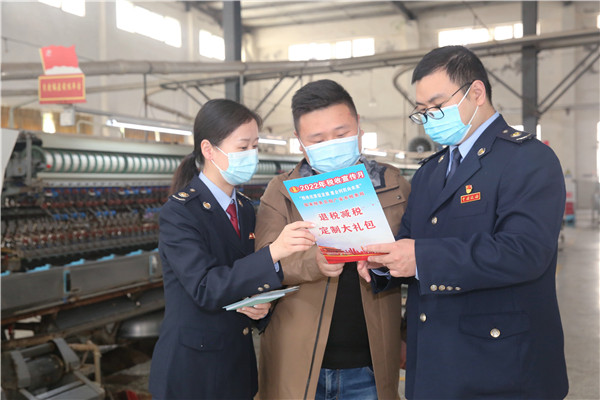 在四川安泰茧丝绸集团有限公司,同样收到退税减税政策大礼包的公司负责人唐定云高兴地算着税收优惠帐,“今年国家新出台的一系列减税降费政策真是暖到我们企业心坎上了。按照最新政策,今年,我公司预计可享受增值税增量留抵退税400余万元,退回来的流动资金不仅将减少企业贷款压力,还有效缓解了备货压力,也更加坚定了我对企业未来发展的信心”。