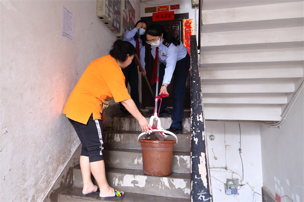 闻令而动,灾难中“税务蓝”更显底色。安岳税务全体职工主动参与灾后救援,青年干部组成一支“及时机动队”,前往邻近小区、老旧街道等存在暴雨后安全隐患的重点场所查看摸排房屋安全、道路安全等情况。同时,帮助市政工人清理街道旁倒塌树木和构筑物残渣,清除通行障碍,助力恢复城市交通生命线。