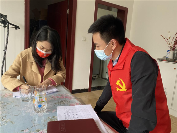 “拉吉时不党建工作队”成员开展“疫情防控网格敲门”入户排查工作(摄影:祝米艺)