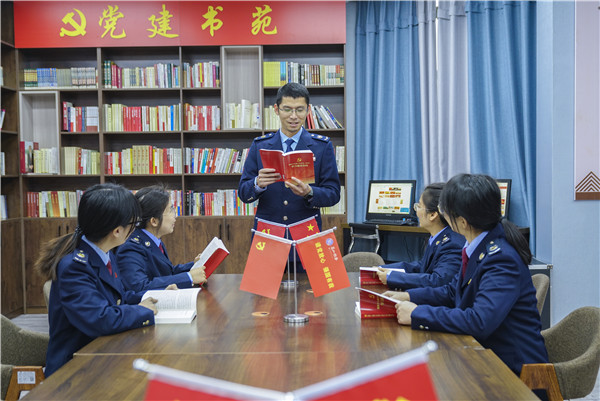 “把‘立德’写在青春奋斗的路上”,入选省税务局稽查业务骨干人才库、荣获“四川省巾帼建功标兵”的青年干部何恬在青年理论学习小组活动中与大家一起分享从事10年税收稽查工作的心得体会。