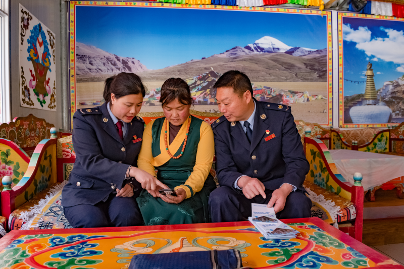 阿坝税务干部为少数民族群众推广“非接触式”办税缴费服务