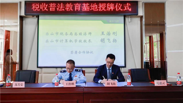 四川新闻网成都4月22日讯 为进一步做好青少年税收普法宣传教育工作,营造良好而浓厚的税法知识宣传氛围,国家税务总局乐山市税务局与乐山市计算机学校携手合作建立税收普法教育基地,并于4月21日在乐山市计算机学校举行签约授牌仪式。