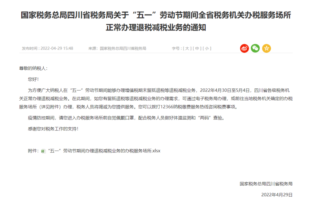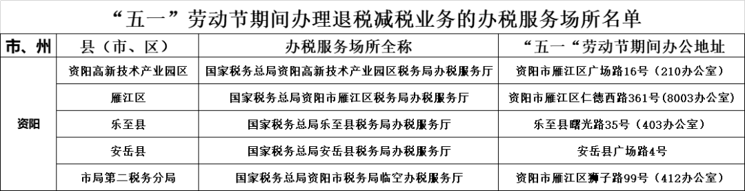 四川新闻网成都5月4日讯 为方便广大纳税人在“五一”劳动节期间能够办理退税减税业务,4月30日至5月4日,资阳市各级税务机关假期不离岗,服务不打烊,全力确保纳税人及时享受优惠政策。
