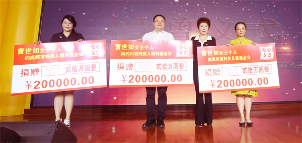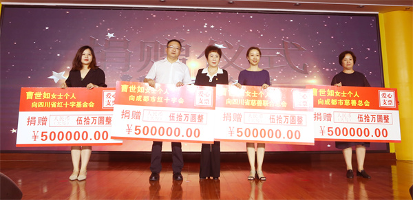 在活动接近尾声之际,红旗连锁党委书记、董事长曹世如个人向四川省慈善联合总会、四川省红十字基金会、成都市红十字会、成都市慈善总会四家慈善机构各捐赠50万元;向四川省妇女儿童基金会、四川省残疾人福利基金会、成都市残疾人福利基金会三家慈善机构各捐赠20万元,助力社会公益慈善事业发展。