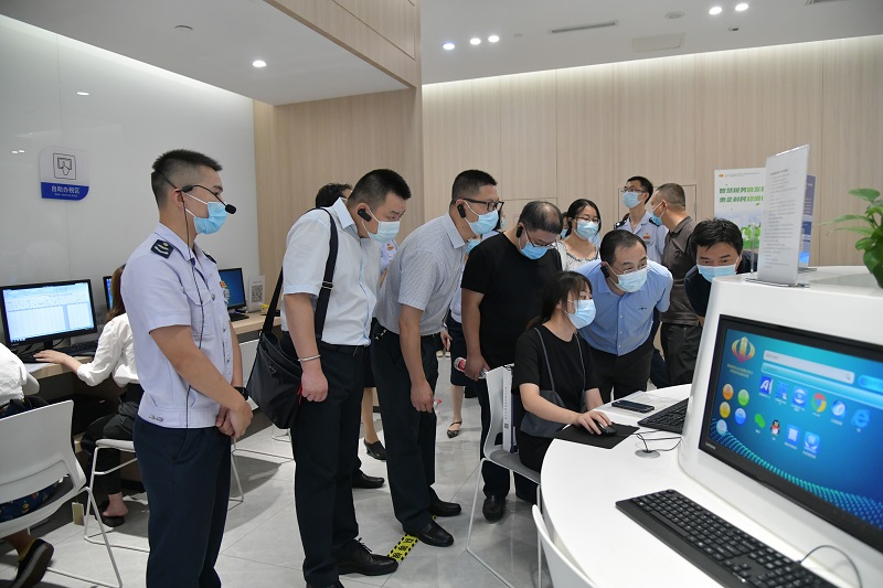 在青羊区税务局办税服务大厅里,特邀代表委员们分别来到智能导税区、“一窗通办”区、自助服务区等功能区,“沉浸式”观摩税费业务“一窗通办”、票证自助打印、远程纳税辅导等业务流程,亲自操作体验自助领票机、智能填单台等智慧办税设备。