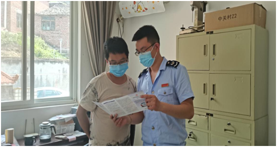 峨边县税务局干部到邦达装卸部为庞和送上退役士兵税收优惠政策(摄影:黄倩颖)