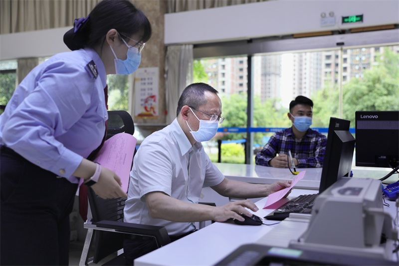 “一把手”下沉办税服务厅一线,流程快不快成了大家关注焦点。“想要让留抵退税红利迅速兑现,就要实打实体验办理流程,才能找出差距、提升效率,真正把政策落实的‘最后一公里’踩实。”内江市税务局“一把手”杨煜川来到经济技术开发区税务局办税大厅当起了退税经办员。杨煜川受理纳税人退税申请,登录电子税务局,完成初审后台数据,开具发放退还书,全流程一气呵成。