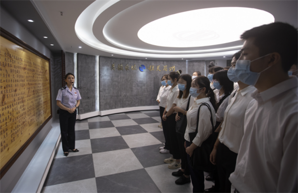 在眉山税务文化展厅,讲解员从中国税史讲到眉山税情,从东坡税收思想讲到眉山税收改革,从廉洁从税讲到文化兴税,深入浅出,精彩动人,一幅幅展板、一列列展品、一项项荣誉让每位新公务员心生敬仰、心存敬畏。