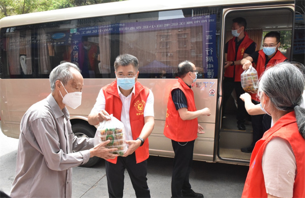 9月1日上午12点左右,正在社区执勤的志愿者们收到了一份特殊的午餐。原来,王小平穿上志愿者的红马褂,化身送餐员来到疫情防控卡点,为正在执勤的社区干部和志愿者们送来了600份热腾腾的饭菜。