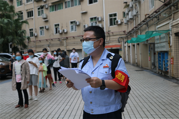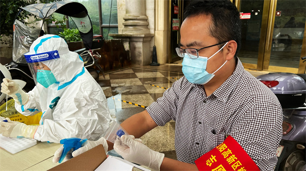 “这些天真是辛苦你们了!看到有你们在,我们心里就踏实了。”正在排队做核酸的一名群众竖起了大拇指。
