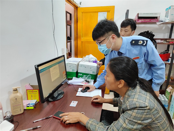 税务人员到顺河村税邮驿家辅导纳税人开票(摄影:徐靖雯)