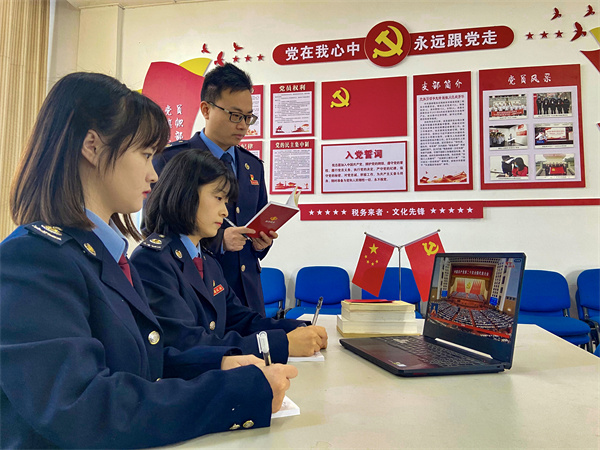 同样受到二十大精神感召的还有攀枝花市税务局青年理论小组成员们。一大早,刚到单位的青年干部们就聚到党员活动室,集体学习讨论党的二十大精神。“我们将时刻保持拼搏进取的热情和决心,立足本职工作、打磨业务技能、争当改革先锋,不断提升税费服务水平,在青春的赛道上跑出税务青年的最好成绩。”