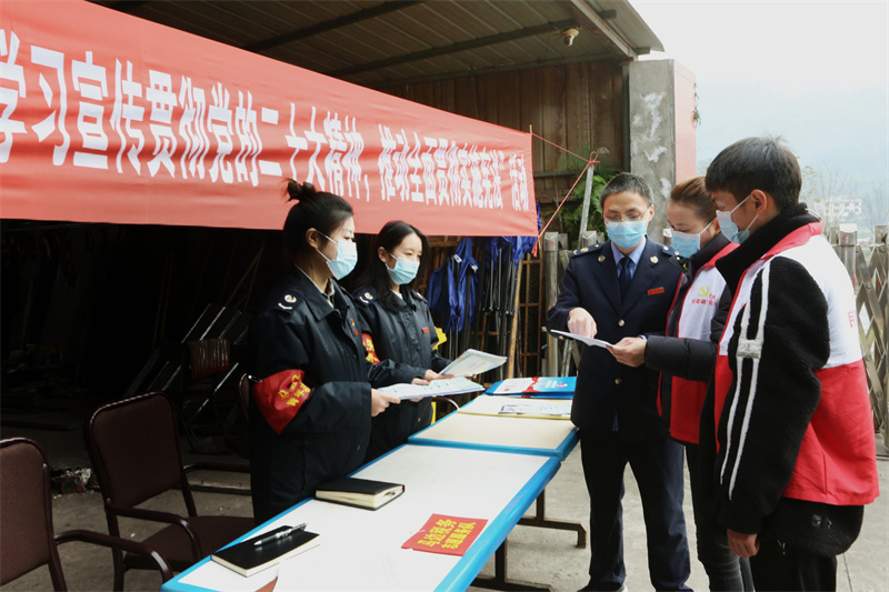 乐山市马边县税务青年志愿者为光明社区居民开展“讲宪法、送政策”活动