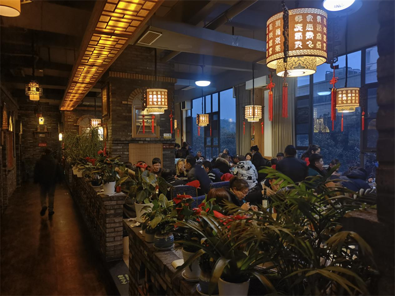 犍为县蜀南餐饮店春节期间生意火爆、食客众多。(摄影:张智)