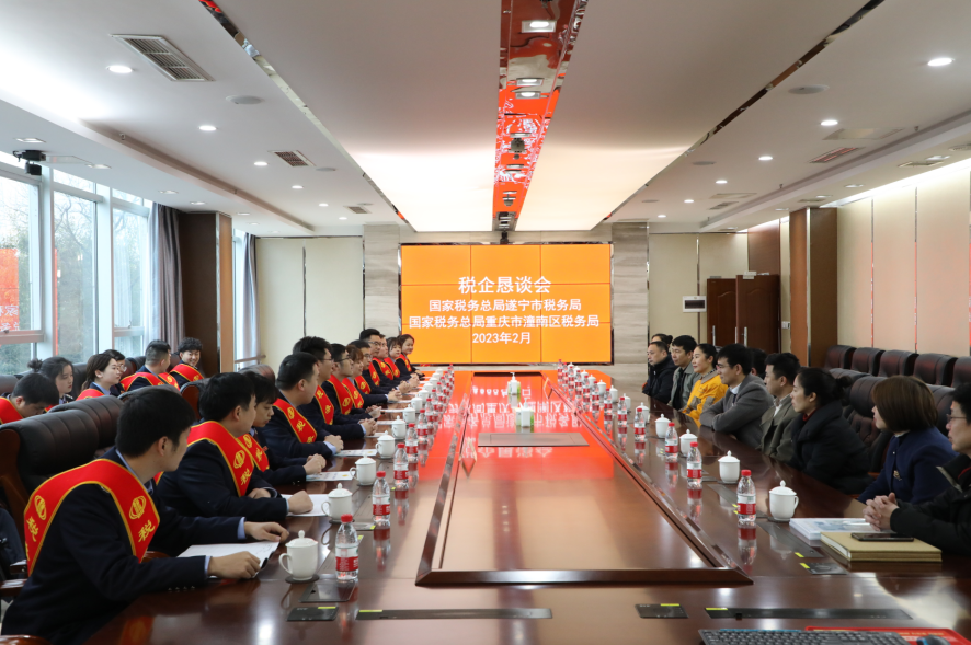 仪式后,税务秘书与遂潼产业园区企业代表召开“办好惠民事 服务现代化”税企恳谈会,通过同问需求、同答疑惑、同讲政策、同解难题的方式,耐心倾听纳税人对川渝通办、非接触式办税的切身感受和意见诉求,让纳税人缴费人能够切身感受到“一把尺子、一个标准、一个准绳”的同质服务。