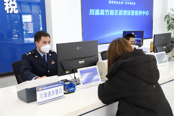 连片的厂房和密集的施工工地,川渝高竹新区正成为大有可为的热土。目前,区域内已有约2000户涉税经营主体,自2021年10月川渝高竹新区税费征管服务中心成立以来,已累计办理税费业务15.3万余笔。