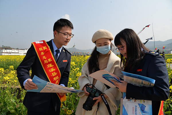 税务青年志愿者到赏花节现场开展税收政策宣传