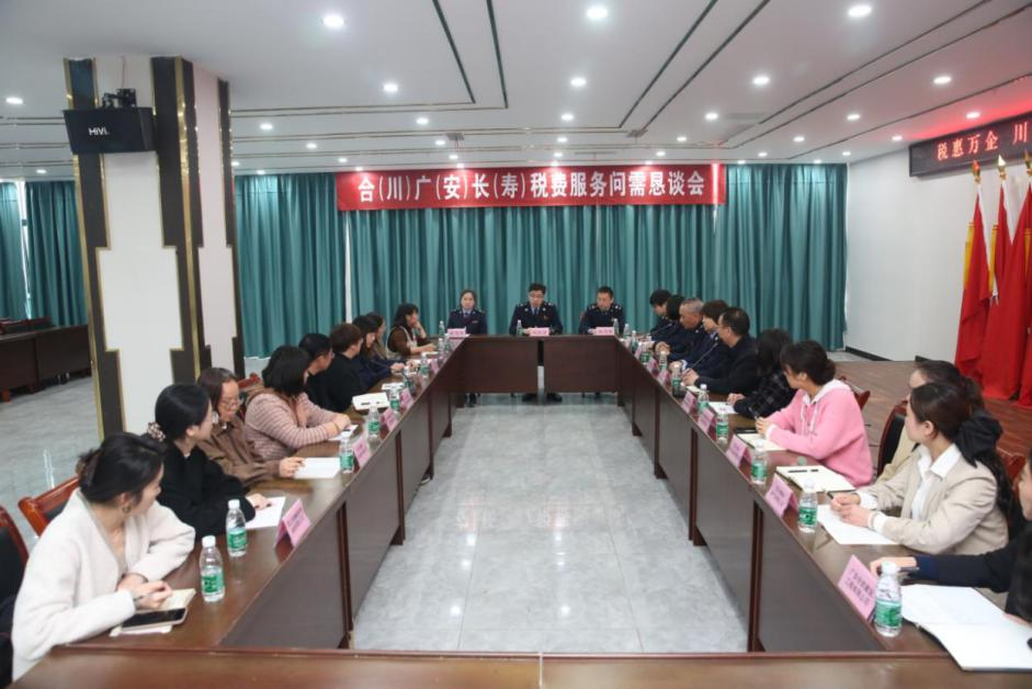 不仅“请进来”,更要“走出去”。当天,合广长税务部门积极组建“税费服务辅导团”深入四川银钢一通凸轮轴有限公司、广安凯特制药有限公司等重点企业开展大走访活动,为企业送去“税收优惠政策大礼包”,开展定制服务,“一对一”倾听诉求需求,帮助企业答疑解惑,解决涉税难题,切实打通服务企业“最后一公里”。