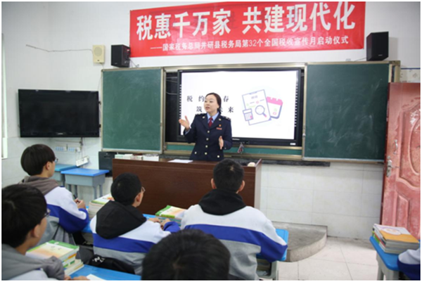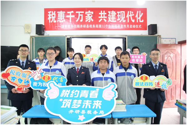 四川新闻网成都3月31日讯 3月31日,国家税务总局井研县税务局走进井研县高级职业中学,围绕“税惠千万家 共建现代化”开展税法宣传活动暨第32个全国税收宣传月启动仪式,以“税约青春 筑梦未来”为主题引导青少年关注税收、与税同行,以寓教于乐的方式为同学们带来了一堂干货满满的税法宣传课。