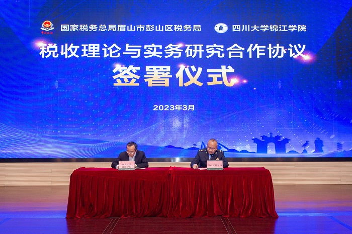 今后,彭山税务将与四川大学锦江学院在教学项目共研、教学基地共用、实务案例共享、人才共育等方面,开展长期稳定的全方位合作。在区税务局成立“卓越人才实践基地”,为优秀学生提供实习锻炼平台;邀请学生进行“税务体验式”活动;选派税务局实务专家参与课题研究;定期举办税法宣传讲座,为高校教师和学生送政策送服务。锦江学院将在该校设立“税务干部培训基地”,将学校教师的税收科研成果进行不定期分享。通过密切合作,税校双方将发挥1+1>2的协同效应,努力培养高素质经济管理和税收人才,用科研结果服务地方经济社会发展。