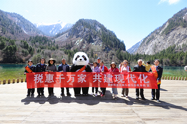 九寨税务青年干部搭乘“旅游快车”,走进九寨沟景区,开展税法宣传进景区系列志愿服务活动。活动现场,九寨税务青年干部们通过设立咨询台、发放宣传册、穿熊猫衣与游客零距离互动,向景区商户和过往游客宣传最新税费优惠政策和便民办税举措,让纳税人在轻松愉悦的氛围中感受到“便民办税春风行动”的暖意浓浓。