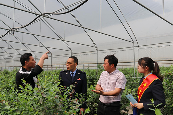 新河村原驻村工作队队长、“乐山市第六届道德模范”拉吉时不心系彝区产业发展,带领“乐税青年·彝区志愿服务队”走进观光采摘棚,查看蓝莓长势,了解蓝莓种植培育、生产加工、研发销售等情况,倾情为园区负责人宣传助农惠农税收优惠政策,发放税收宣传周边产品环保袋30余份,一副乡村振兴“莓”好“蓝”图在“税惠春风”吹拂下正徐徐展开。