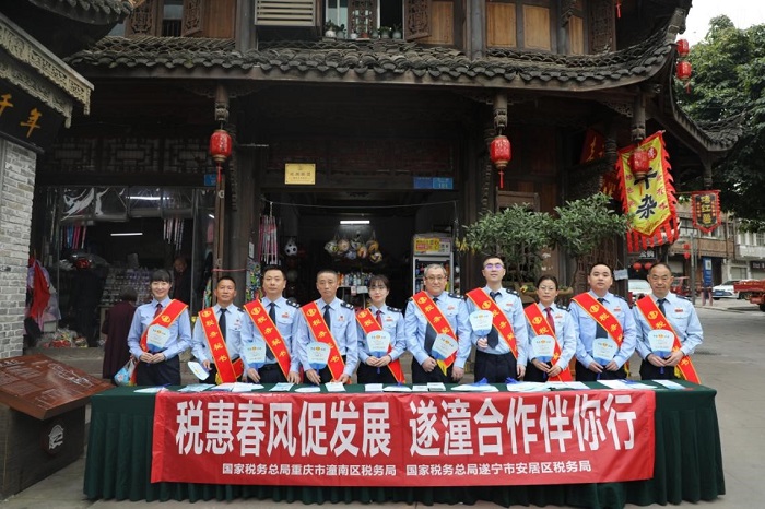 除联合开展“税法云播”以外,第32个全国税收宣传月期间,两地税务部门还聚焦服务遂潼涪江创新产业园区,联合开展了“税务秘书”进园区、进企业活动;聚焦服务小微市场主体,深入两地接壤乡镇——潼南区双江镇,开展针对古镇商户、游客的政策宣传,将便民办税的春风送户到人。此外,还将开展税费服务体验日和“税企云沙龙”活动,邀请遂潼两地特邀监督员、涉税中介机构和纳税人代表等,深入遂潼两地办税服务厅,深度体验办税缴费方式和川渝通办业务流程,以视频连线、云端互动的方式,邀请两地纳税人代表共话税收,倾听企业诉求、解答涉税问题,帮助企业掌握税收优惠政策和政策落实跟踪服务。