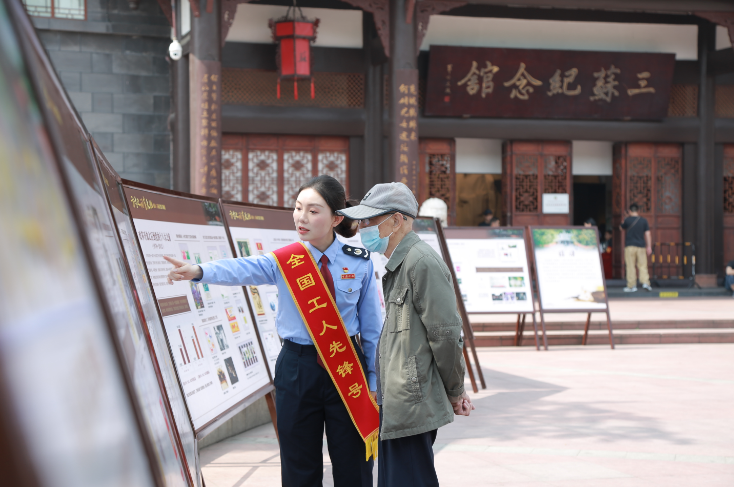 四川新闻网成都5月2日讯 5月1日,“方寸之间有天地”眉山三苏祠门票主题展在三苏祠博物馆南大门外启贤广场开展。“全国工人先锋号”国家税务总局眉山市税务局纳税服务中心(税收宣传中心)现场讲解。