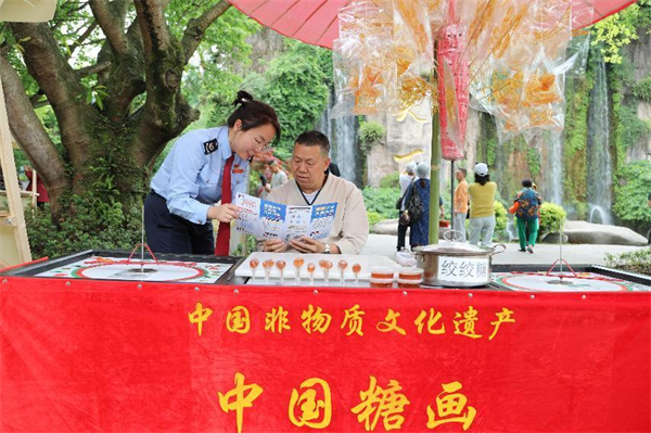 峨眉山市税务局青年干部为景区从业人员宣传税费优惠政策(拍摄:雷娟)