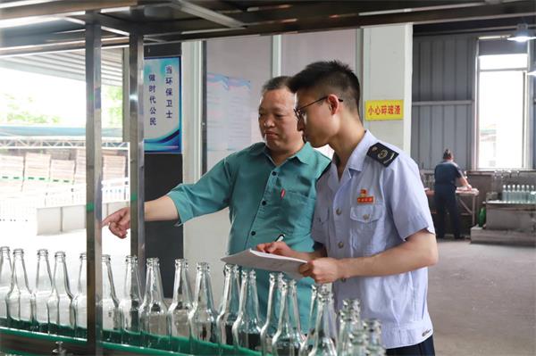 内江市东兴区税务局干部到内江蓝洋玻璃制品有限公司了解清洁生产情况