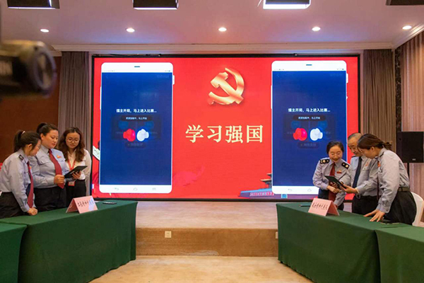 在税企联建主题党日活动现场,一场紧张激烈的知识挑战赛让现场活动气氛持续升温,由税企支部党员代表混合组成的四支代表队拼手速、比脑力,以“学习强国”平台答题PK的形式检验日常学习成果。