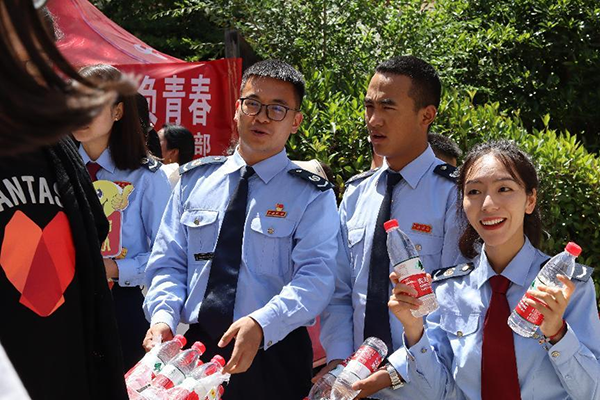 “加油!你一定能成功!”“把握机会,改变人生!”一个微笑,一份祝福,队员们在考点外为进场的考生加油鼓劲,引导考生们有序进场,协助警察同志维护考场周边秩序,充分展示了小金县税务局青年干部们“奉献、友爱、互助、进步”的精神风貌,以暖心细致的服务收获了陪考家长的一致点赞。