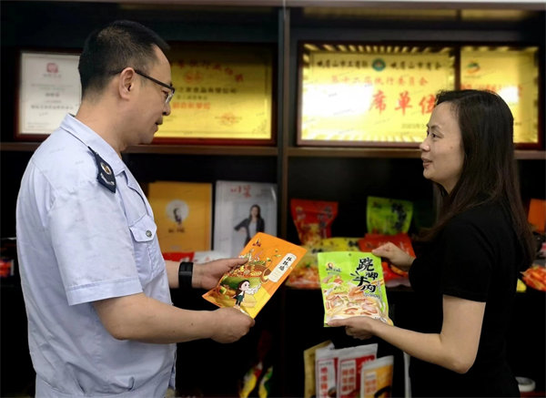 峨眉山市税务局胜利分局负责人到四川省盼之家食品有限公司走访调研(拍摄:雷娟)