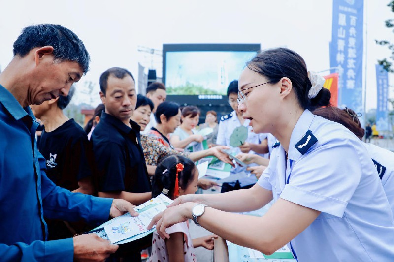 在这场“龙舟盛宴”的现场,出现了一个特殊的“税费政策宣传”摊位,一个个蓝色身影正在摊位忙碌着,他们是青神县税务局纳税服务团队的志愿者们。一大早,他们就来到龙舟赛现场,拉起政策宣传易拉宝,堆满税收“大礼包”,做好万全准备给来往的纳税人缴费人们带来一场特别的面对面服务。