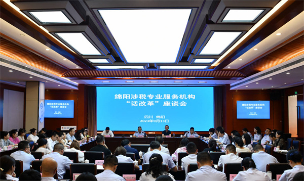 四川新闻网成都9月14日讯 9月13日,绵阳市税务局会同市财政局和市市场监督管理局共同举办全市涉税专业服务机构座谈会,邀请市代理记账协会、省税协绵阳联络处以及全市23户涉税服务专业机构代表面对面聊一聊“心里话”、想一想“金点子”,共商“服务”、共话“改革”,为促进涉税专业服务机构规范健康发展添砖加瓦,为持续优化税费营商环境、进一步深化税收征管改革建言献策。