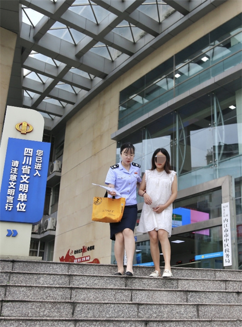 “我来帮您拿东西,您慢一点,注意台阶。”这是在内江市市中区税务局办税服务厅外的一幕,工作人员周奥雪主动搀扶刚办完业务的孕妇下台阶,一步一步慢慢将纳税人送到平地上。