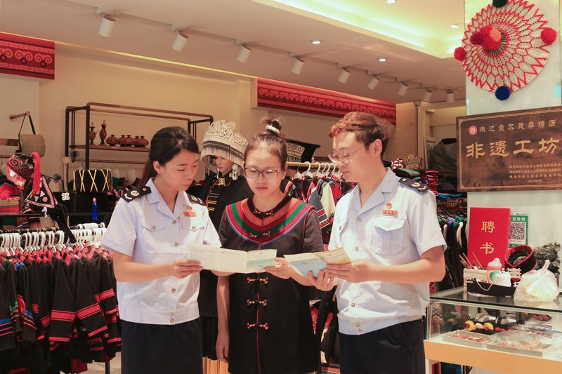 峨边县税务局青年党员干部为彝族纳税人解读税惠政策 摄影:赵婧晔