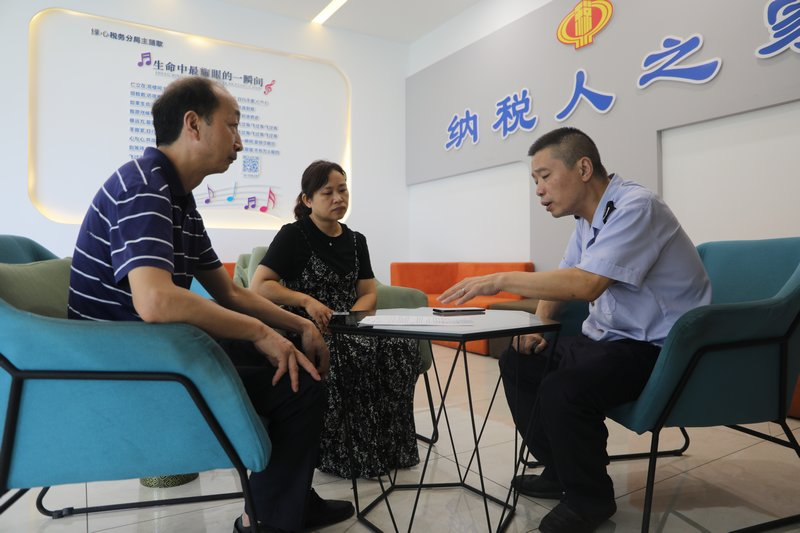 市中区“枫桥式”税务分局干部为纳税人解答税收政策疑问 摄影:李卓雅