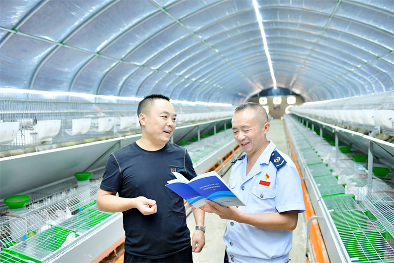 “以前我其实都不怎么关注税收优惠政策,但这几年一方面是税务局宣传、对点帮扶搞得越来越好,另一方面我也确实因为政策享受到实实在在的红利,后面自己就关注起来了,什么六税两费减免、脱贫人口税收优惠,今年还有新的个税减免,虽然没有税务老师专业,但我都还能讲讲,也在帮大家宣传国家好政策咧!现在这里有一千三百多只兔子,明年我还会用省下来的税费继续扩大规模。”金龙镇胡氏家庭农场法人胡路长同来访人员打趣道。